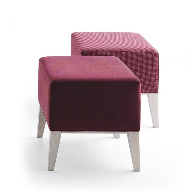 Pouf in legno massiccio. Sedile tappezzato.