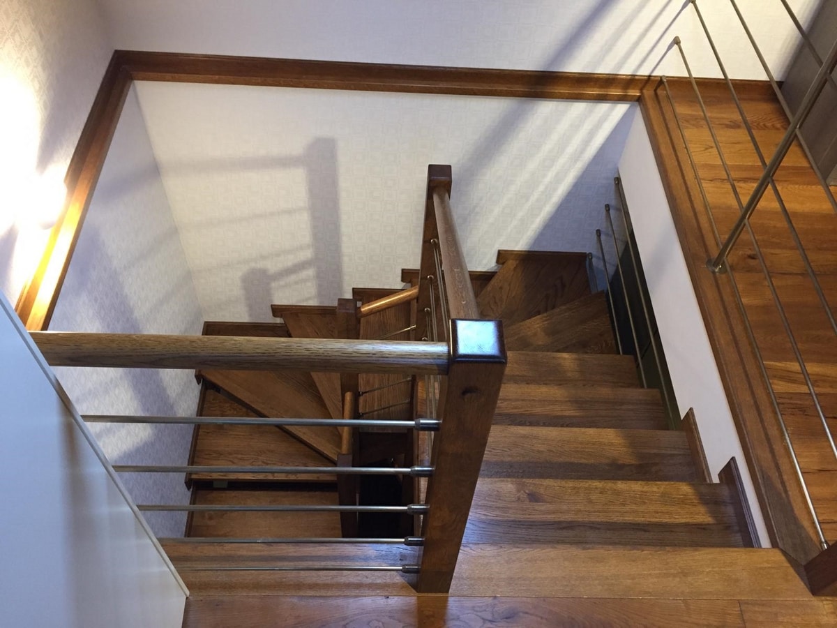 Rivestimento per scala in legno rovere anticato.