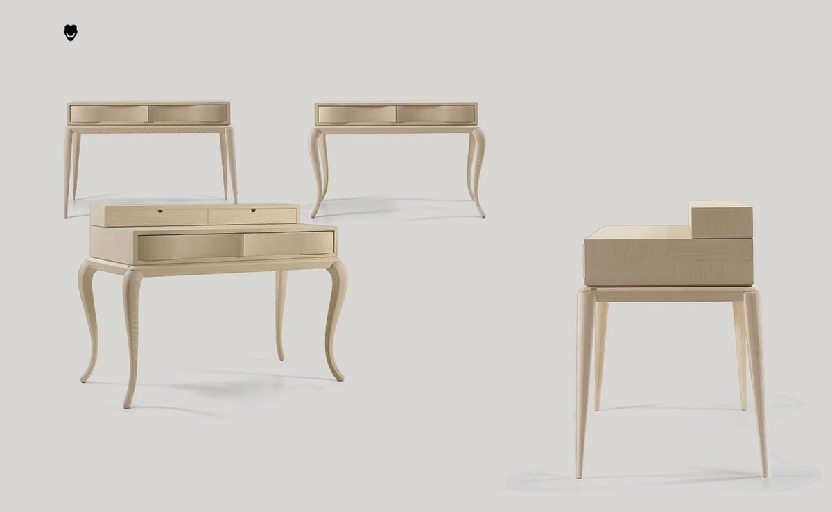 Eleganza semplice, progettata nel minimo dettaglio. Spiccata personalità per lo scrittoio Empire, qui nella versione frassino. Disponibile con e senza cassetti superiori. Gambe a forma conica oppure curvata.