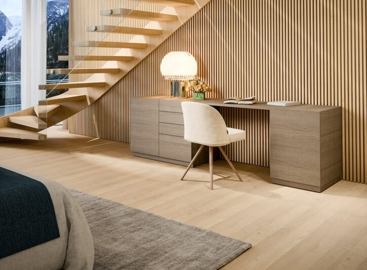 Richiedi prezzi Prodotti similiSistema giorno componibile con piano in legno (rovere o noce), fenix, hpl o ceramica e piedini a scelta (da 5 a 17 cm) in legno o metallo. Ante con apertura push-pull e cassetti con sistema Blumotion ammortizzato. Possibilità di ante e cassetti in fenix o hpl.