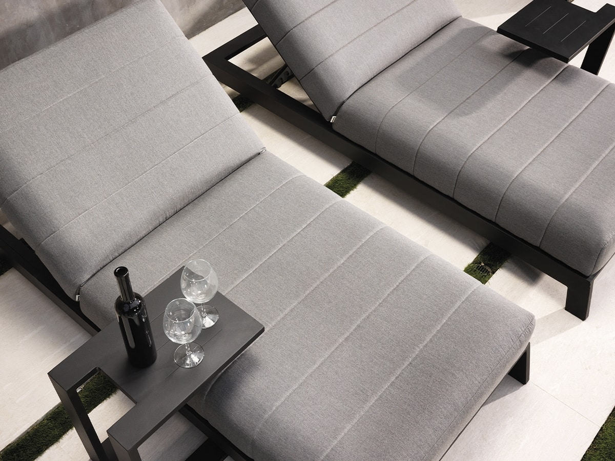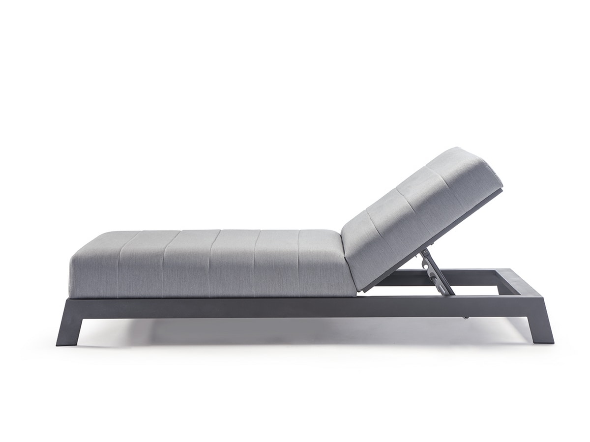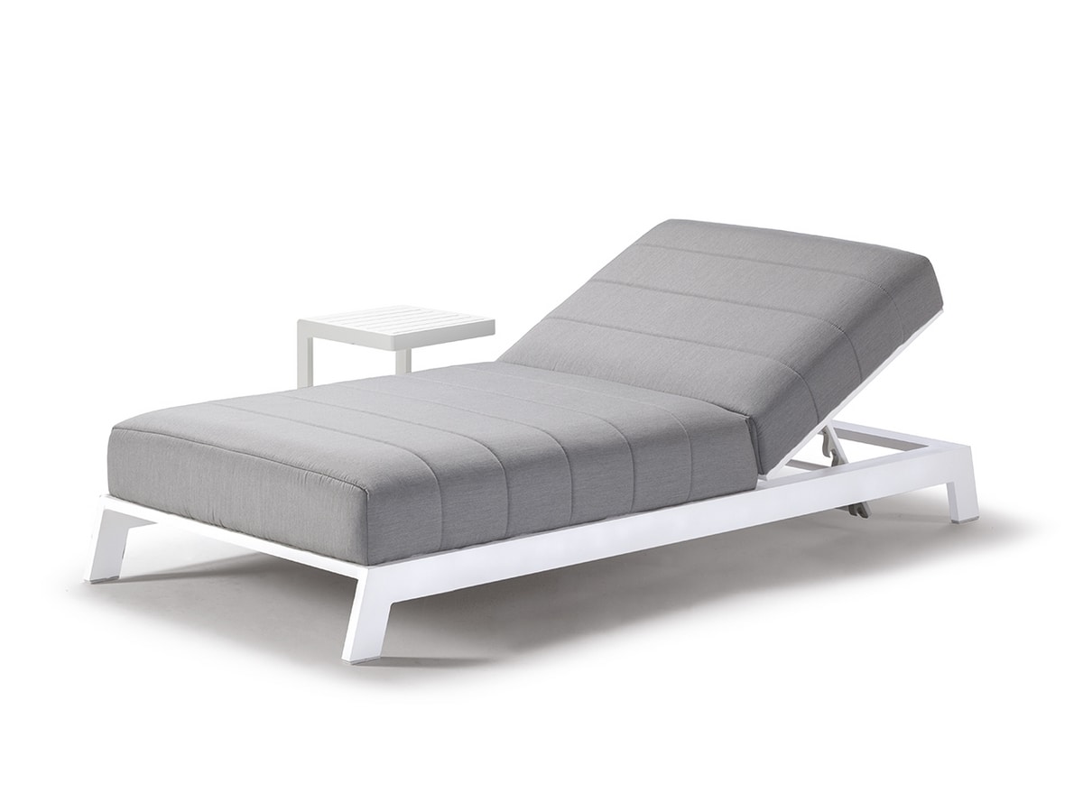 Richiedi prezzi Prodotti similiLettino con struttura in alluminio bianco o antracite e gommapiuma drenante "fast dry foam" con rivestimento in tessuto Sunbrella grigio chiaro o grigio scuro. Adatto per uso esterno.