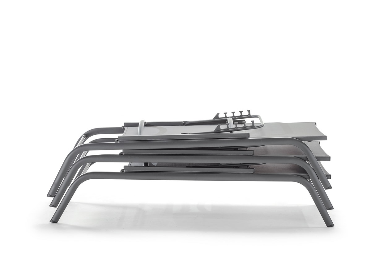 Richiedi prezzi Prodotti similiLettino da sole impilabile con struttura in alluminio color tortora o antracite, schienale e seduta in tessuto textilene abbinato.