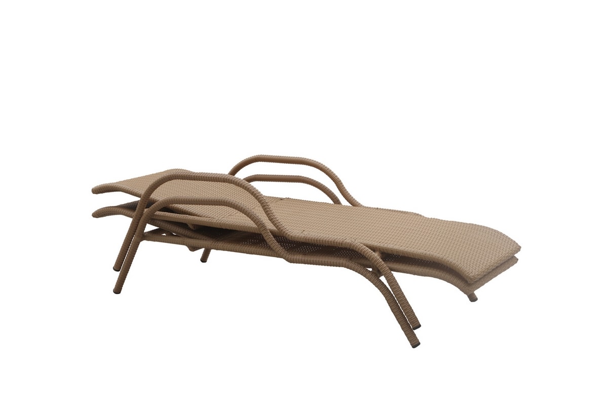 Sdraio reclinabile con braccioli da esterno in fibra sintetica e struttura di alluminio. Un lettino prendisole dal design moderno caratterizzato da linee tondeggianti e armoniose. Grazie alla sua curata progettazione questo lettino è impilabile.