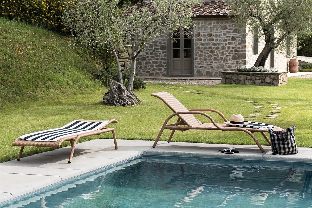 Sdraio reclinabile con braccioli da esterno in fibra sintetica