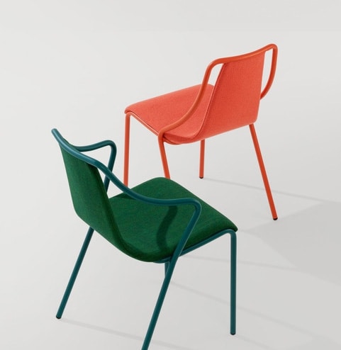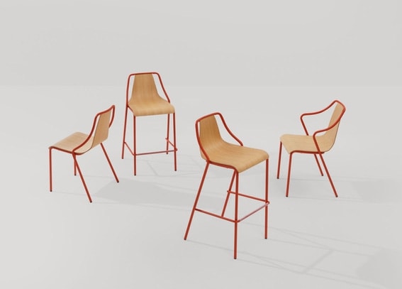 Poltroncina, sedia, sgabello Ola design Paolo Vernier è una collezione di sedute caratterizzata da una scocca sinuosa disponibile in metallo, in legno o imbottita che si innesta in un telaio metallico solido ed elastico. Con struttura e sedile in metallo verniciato ed adatta ad uso outdoor nella versione in acciaio inox.