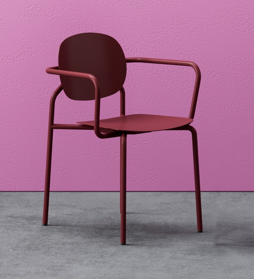 Sedia con braccioli, in acciaio zincato e verniciato per uso esterno, disponibile in 10 diversi colori standard.