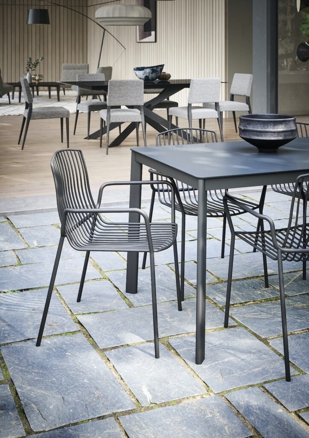 Sedia in metallo con braccioli, per esterno