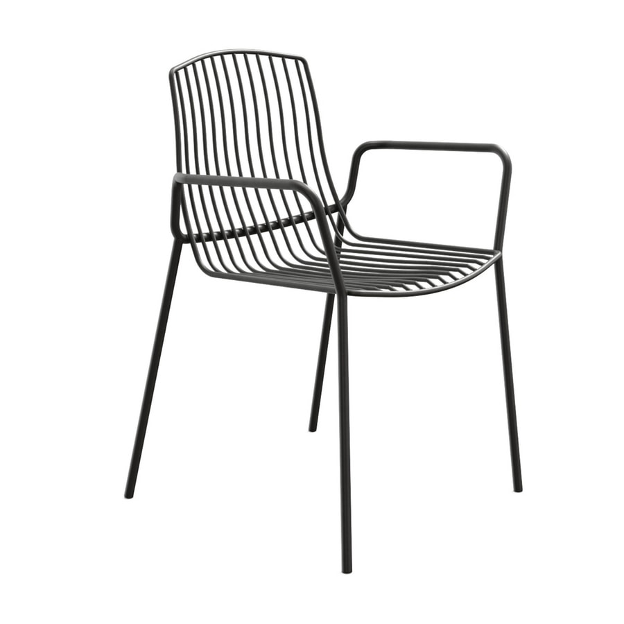 Sedia, poltrona e sgabello da outdoor sono realizzate in metallo tubolare trattato per l’utilizzo esterno, verniciato opaco sei colori. Tutte le versioni sono impilabili.