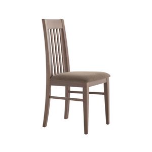 Sedia in legno con seduta imbottita e schienale a doghe verticali