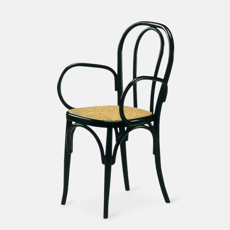 La poltroncina della serie Praga esalta la bellezza della classica struttura in legno curvato a vapore con un bracciolo che diviene un prezioso dettaglio d’eleganza.