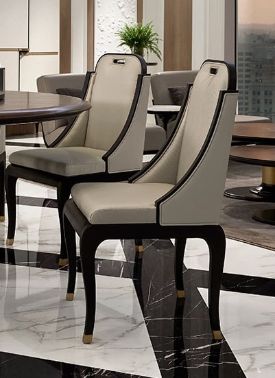 Sedia da pranzo in pelle e tessuto