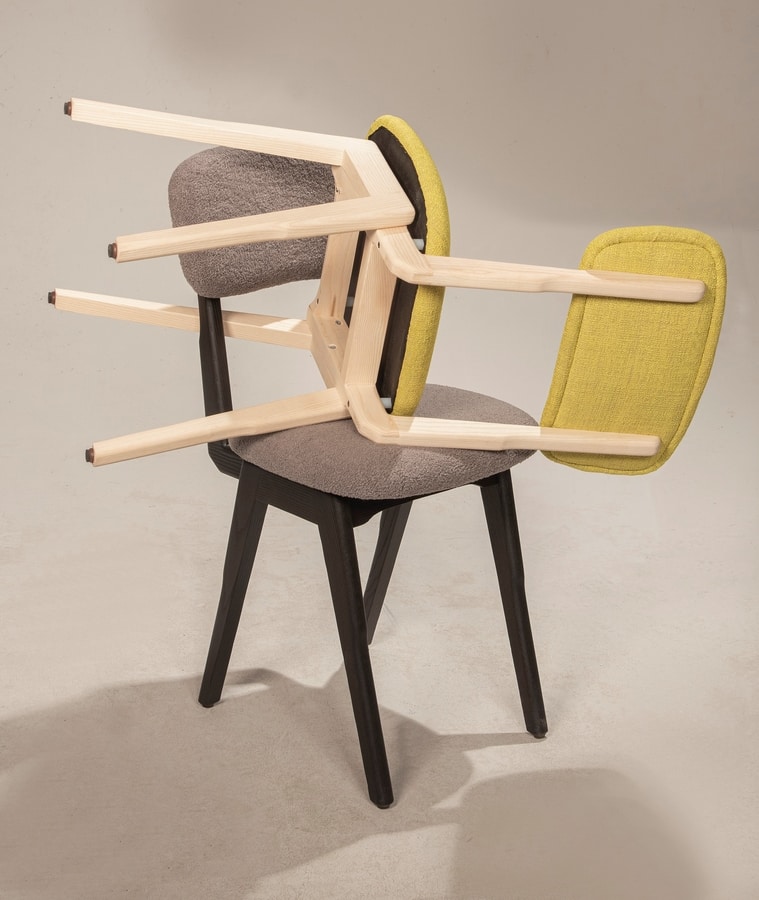 Sedia Ginger in legno frassino, stile contemporaneo, con struttura a cavalletto, ispirata agli anni 50.