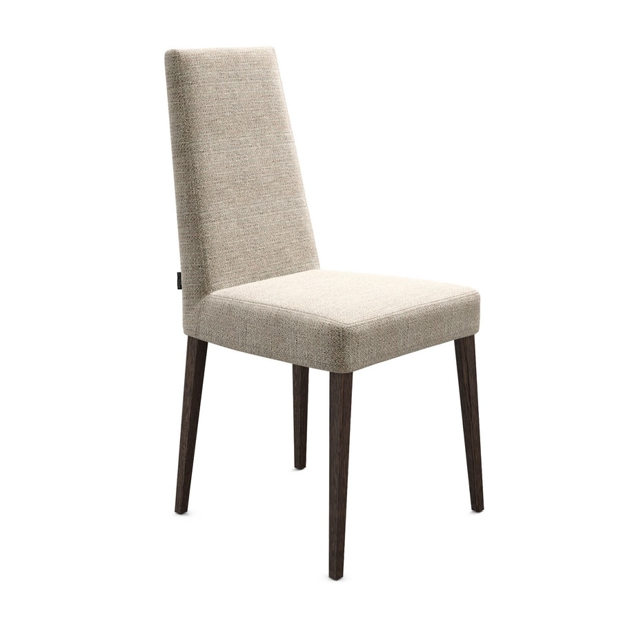 Sedia di sapiente eleganza, Hermitage, completamente sfoderabile, è disponibile con struttura in rovere o noce.