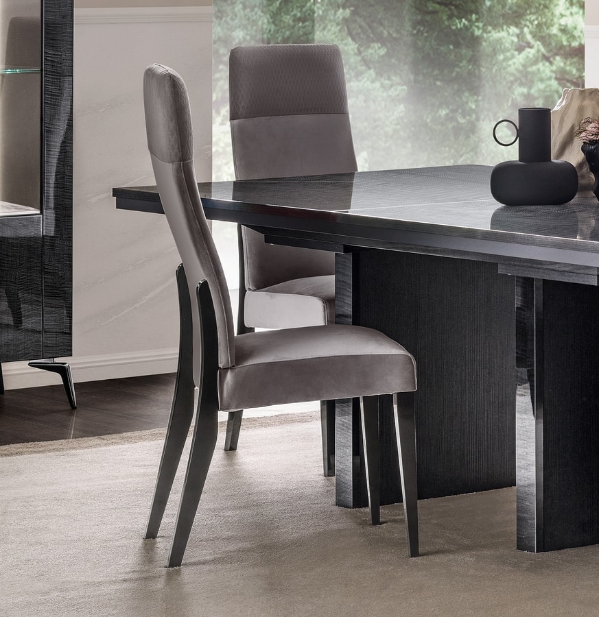 Richiedi prezzi Prodotti similiUn'estetica pulita e raffinata che riflette l’essenza dello stile contemporaneo. Il design minimal e la pulizia delle forme si accostano e si sposano con i materiali e le finiture di pregio, per vestire di innata eleganza le zone dining e living. Una sofisticata finitura legno Sycamore laccata lucida color grigio fumé è il fil rouge che lega tutti gli elementi della collezione Meridiana: tavoli, vetrine, madie e una serie di complementi, quali consolle e occasional table. La possibilità di scegliere tra due diverse tipologie di finiture di piedi e maniglie permette di dare vita ad altrettanti accostamenti dal design esclusivo. La finitura black chrome incarna l’eleganza e la sobrietà del ton sur ton, mentre la finitura oro lucido è il dettaglio che non passa inosservato, come un’immediata dichiarazione di stile. La specchiera è impreziosita dal vetro retrolaccato grigio effetto flute, mentre le luci LED creano inattesi bagliori nelle vetrine e nelle madie. Ogni piccolo dettaglio rispecchia l’intento della collezione Meridiana: esprimere l’essenza del lusso contemporaneo. Una semplicità chic e ricercata per la zona giorno e il salotto.
