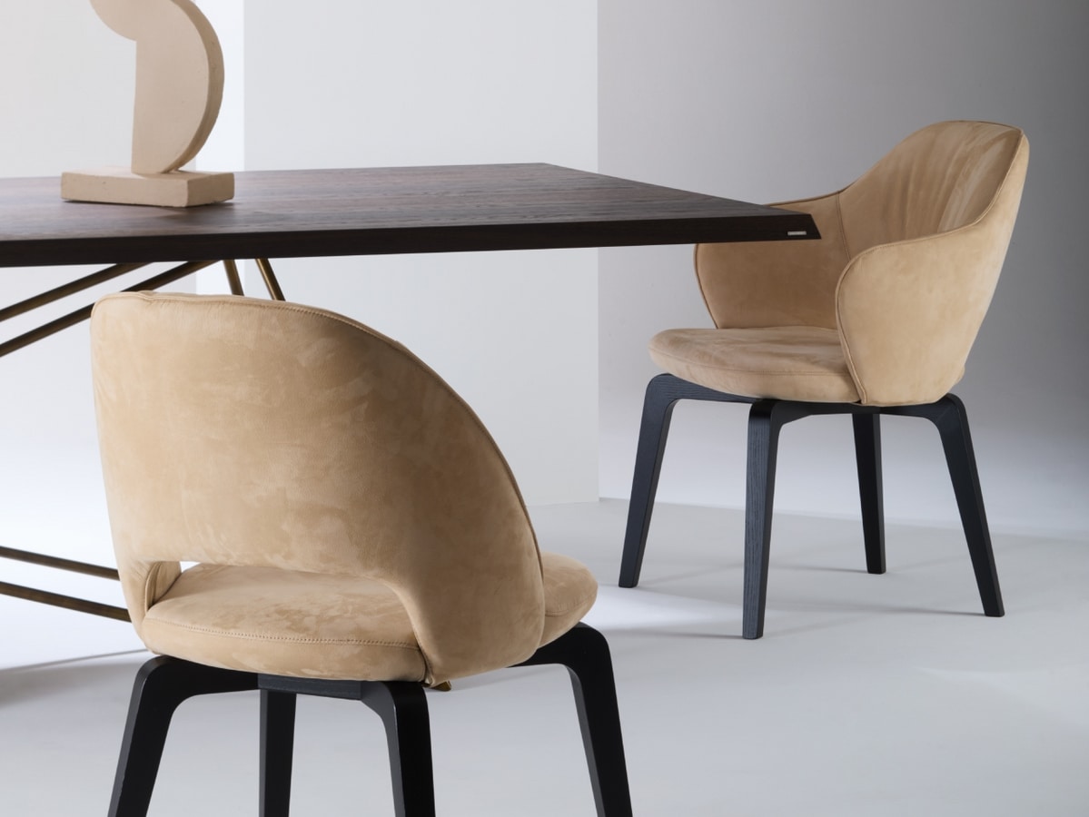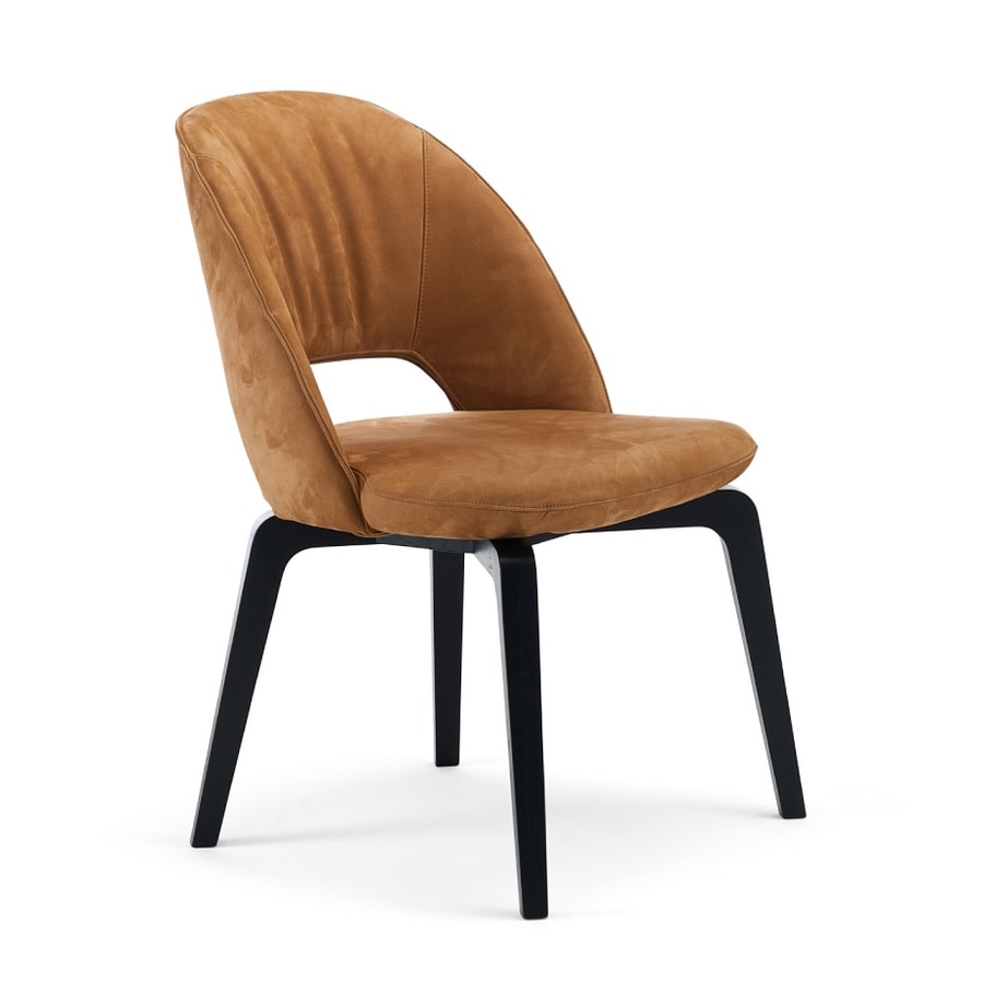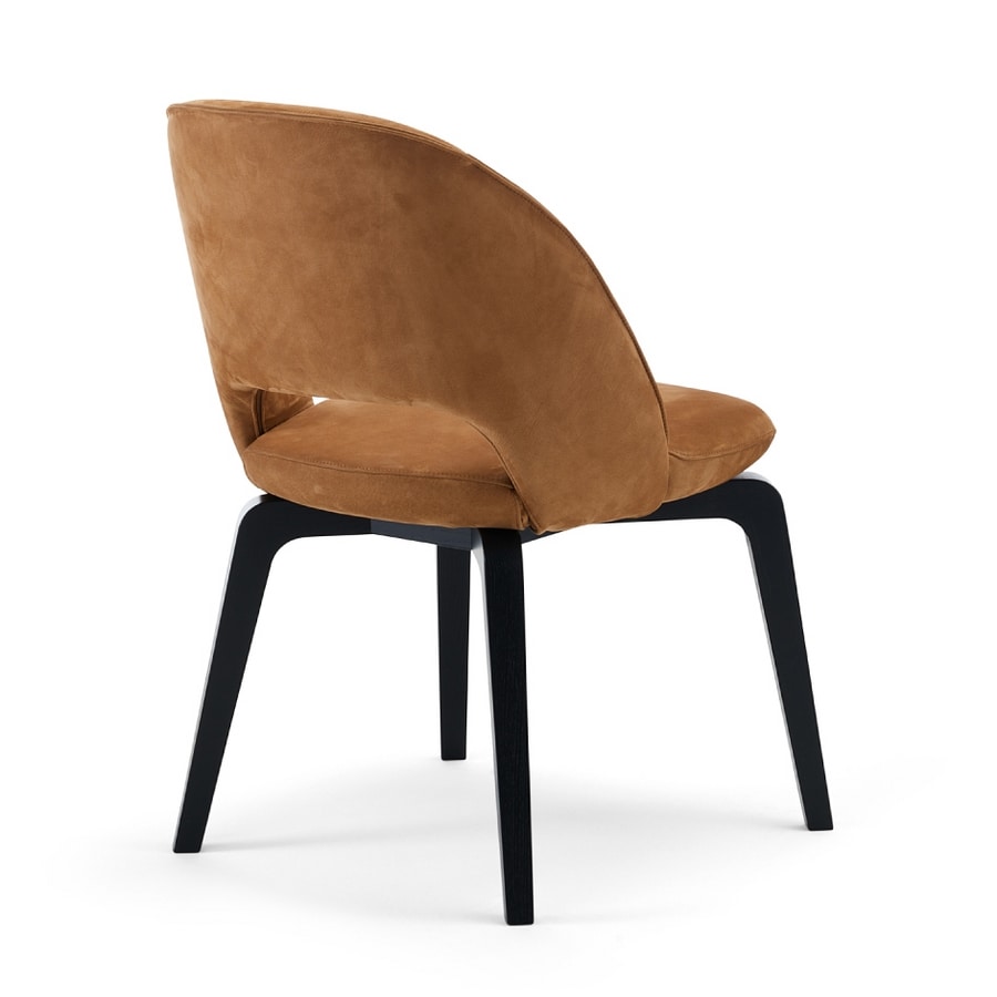Sedia in legno dalle linee essenziali, imbottita