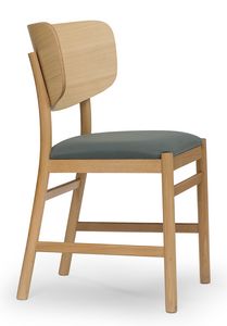 Sedia in legno massiccio, seduta imbottita, per ambienti contract e domestici