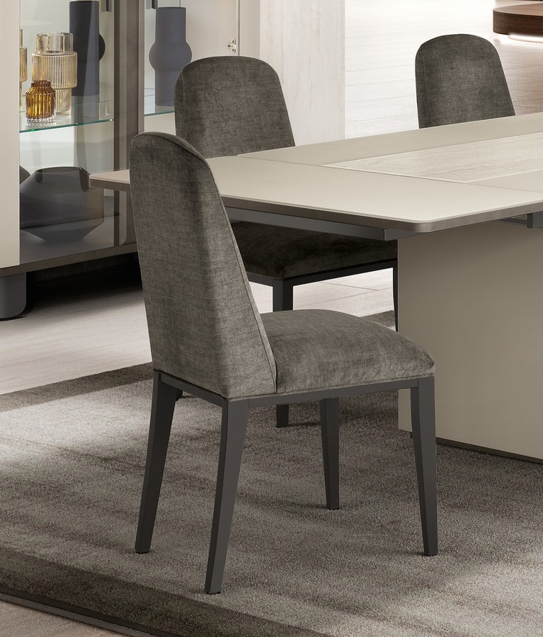 Sedia da pranzo imbottita, con gambe in legno