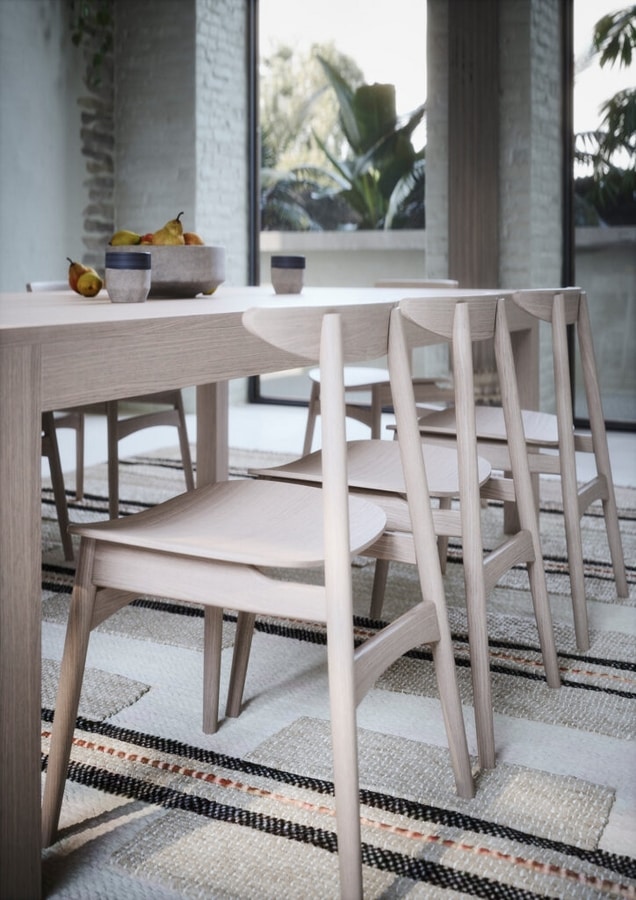 Una sedia dall’aspetto classico, con qualcosa in più. Disponibile in rovere in diverse finiture, possibilità di realizzare seduta e schienale imbottiti.