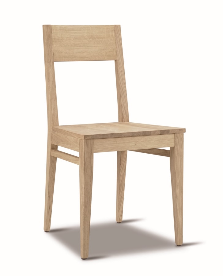 Sedia in legno di rovere con sedile massello, adatta ad ambienti contract e residenziali. Disponibile la versione con sedile imbottito.