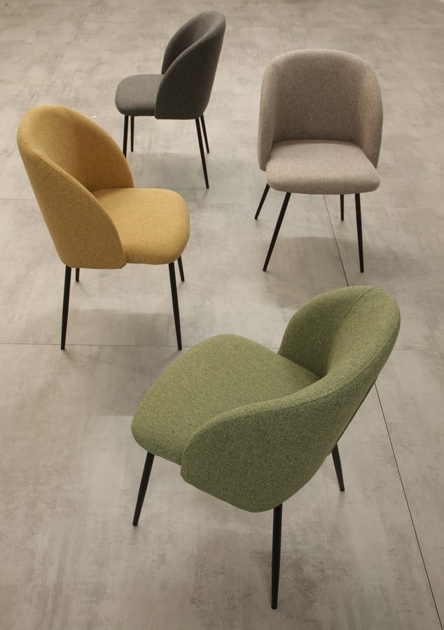 Sedia in metallo, con tessuto antimacchia riciclato