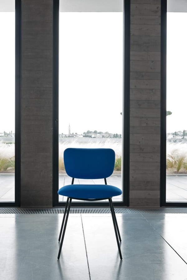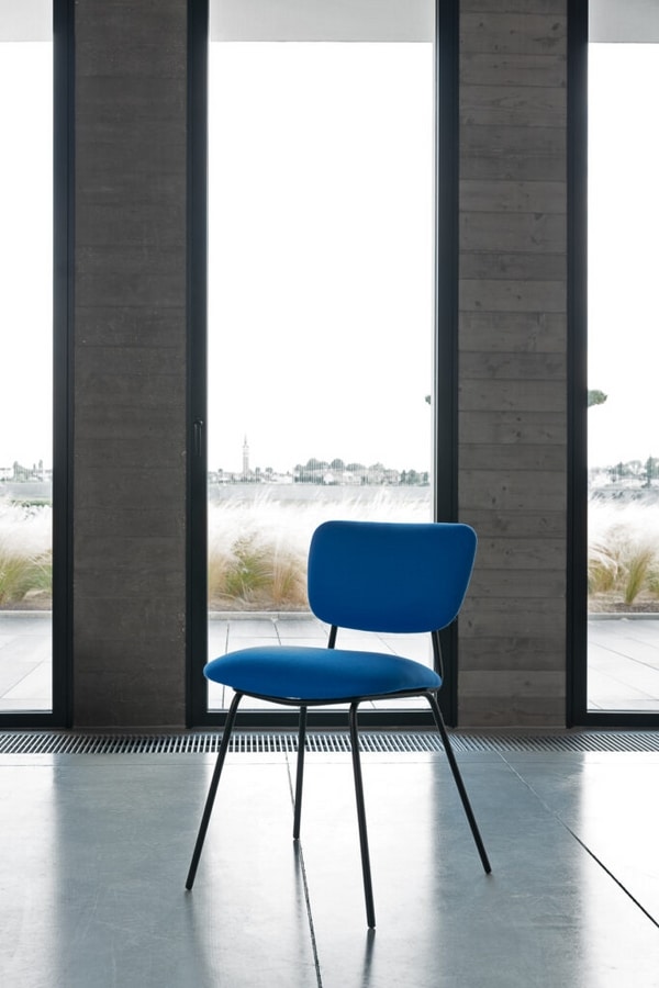 Sedia in metallo, con seduta e schienale imbottiti