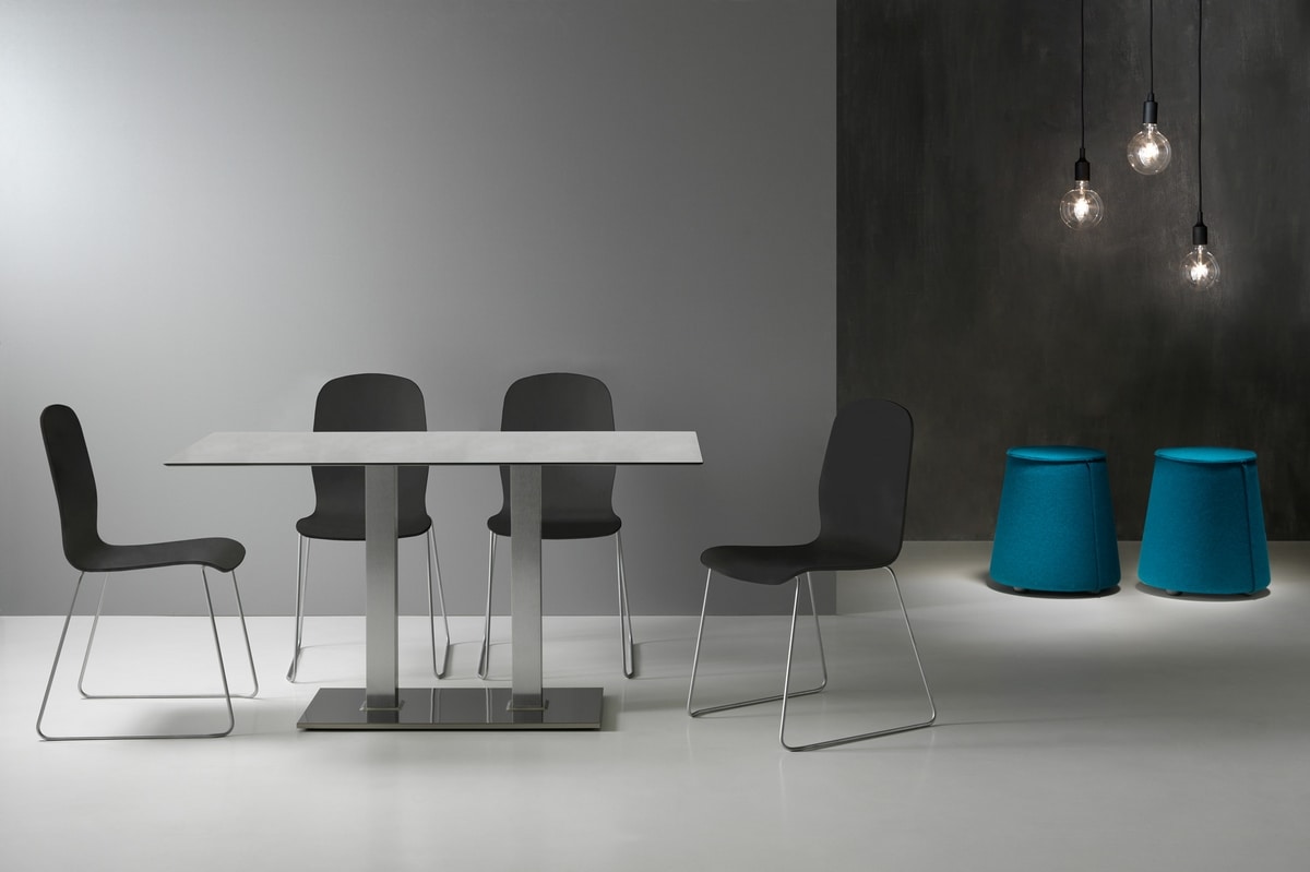 La sedia Milů 901, realizzata da un originale telaio in acciaio e da una scocca in legno con le sue forme leggere e slanciate č ideale per chi vuole un ambiente vitale ed elegante.