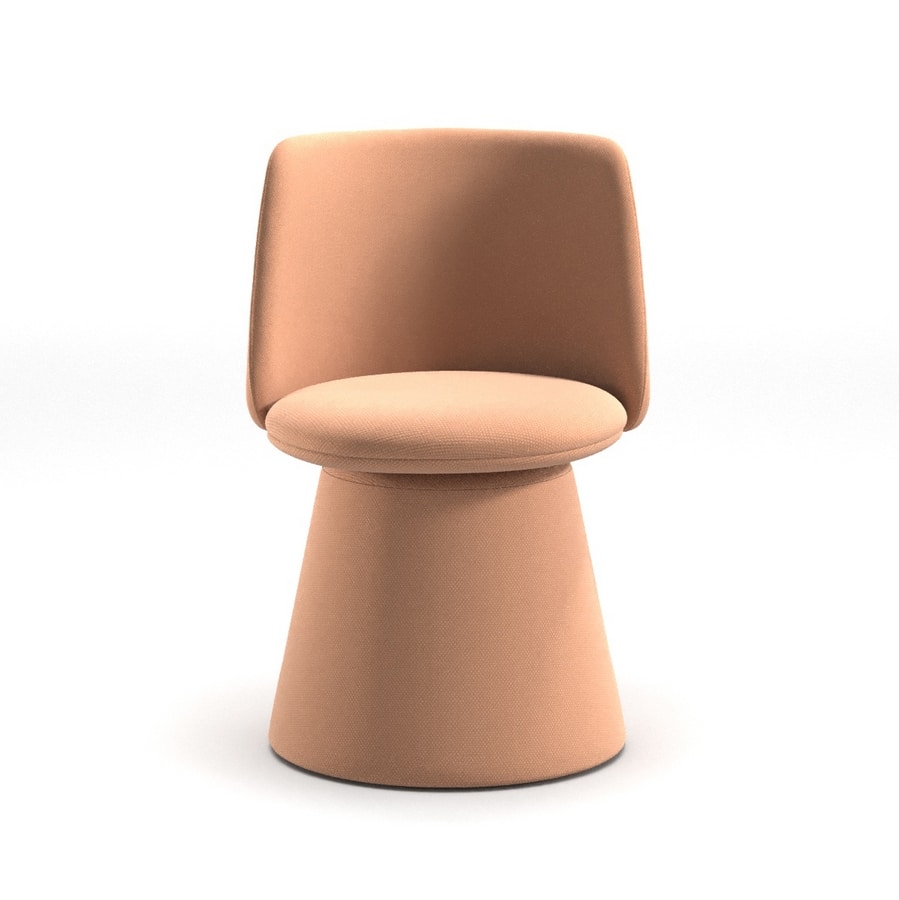 Sedia girevole e autoallineante, tappezzata con espansi e rivestimenti ignifughi. Struttura in multistrato di legno.