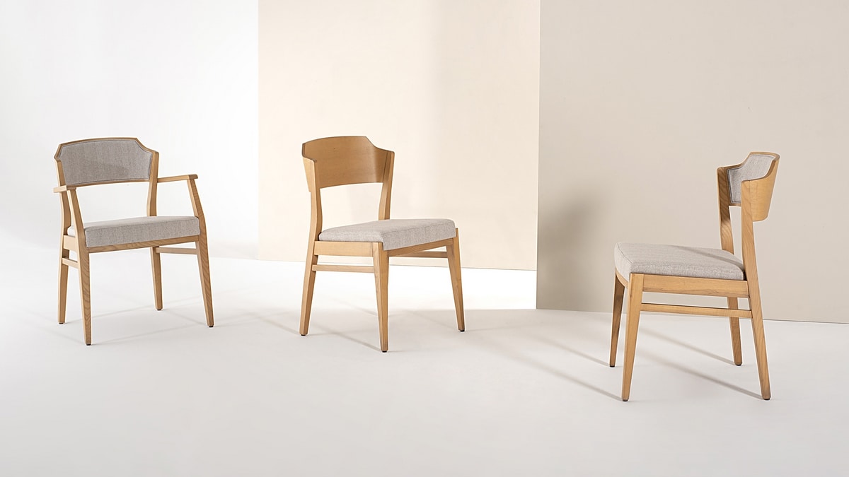 Sedia in legno di frassino, linea classica e ideale per rinnovare gli ambienti contract e residenziali.