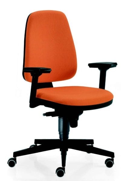 Sedia operativa ufficio, con schienale alto con meccanismo synchro finta pelle. Base nera. Braccioli regolabili 11BH.