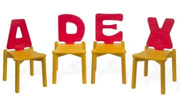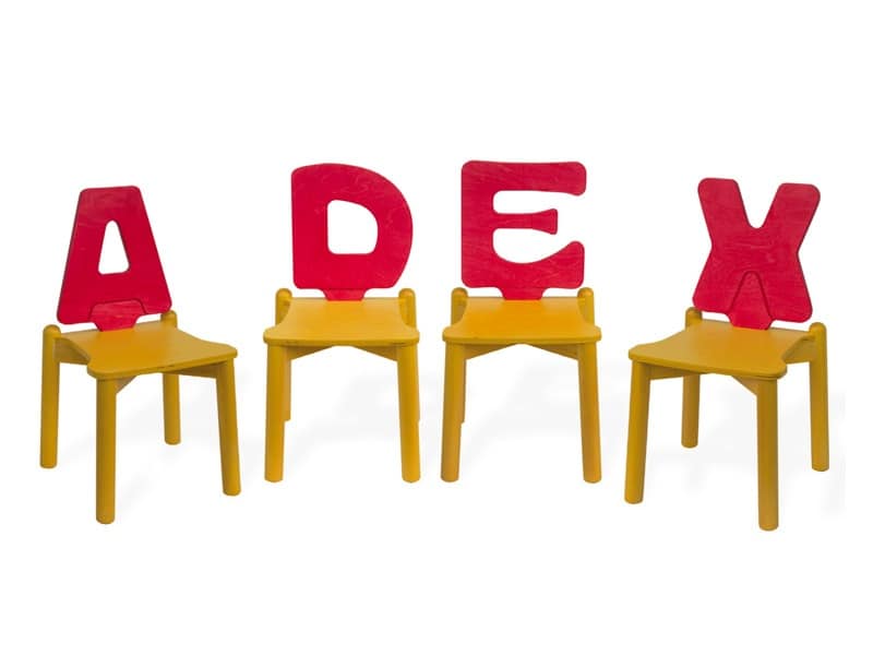 Sedia educativa con lo schienale a forma di lettera dell'alfabeto. Personalizzabile con l'iniziale del nome del bambino. Sedie per bambini, ideali per ludoteche, aree gioco, asili e scuole.
