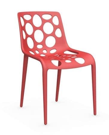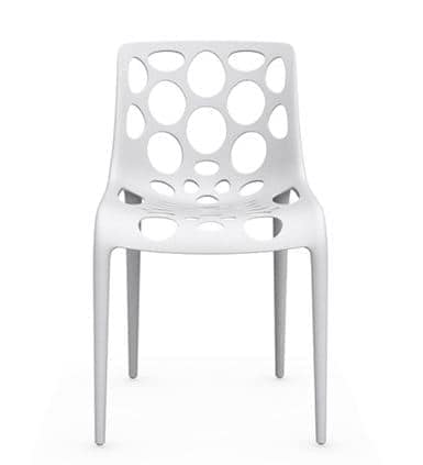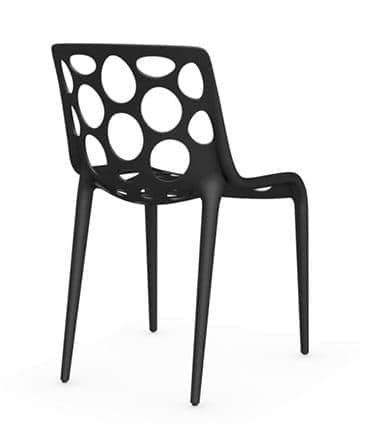 Sedia pratica realizzata in polipropilene con superficie leggermente ruvida, stampata in monoscocca ad iniezione con la tecnica dell'airmoulding: si ottiene una sedia robusta ma allo stesso tempo leggera.