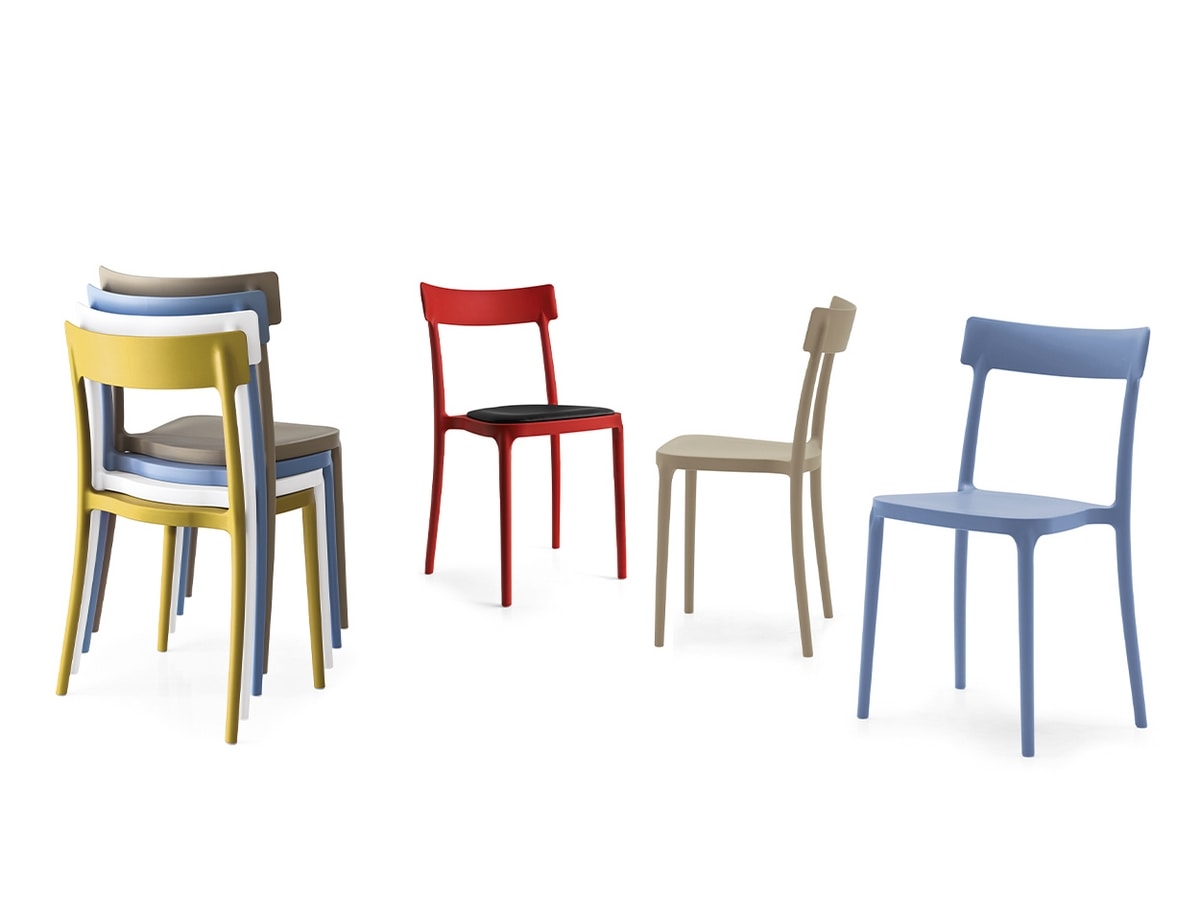 Richiedi prezzi Prodotti similiSedia monoblocco in polipropilene, realizzata con tecnologia airmolding, con piedini intercambiabili ad alta resistenza in PE. Disponibile nelle versioni: Nero Opaco, Bianco Opaco, Blu Opaco, Nocciola Opaco, Tortora Opaco, Senape Opaco, Rosso Opaco.