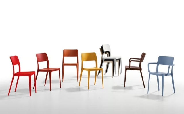 Nenč č una famiglia di sedia/poltroncina e sgabelli impilabile con struttura a quattro gambe in polipropilene. Adatta per uso esterno, č disponibile in diversi colori. Impilabile fino a dieci unitā. Certificazione CATAS disponibile.