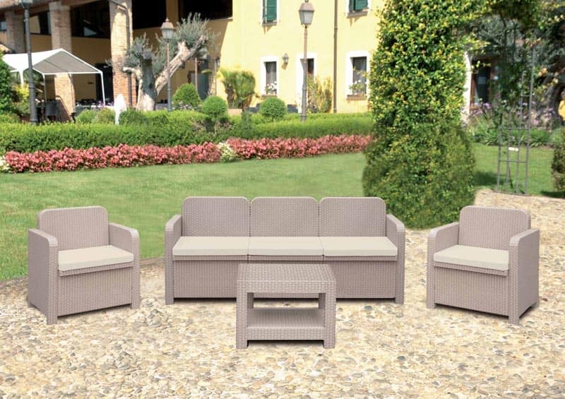 Il Rattan sintetico di questo set è molto bello alla vista ed al tatto, non paragonabile con altri visti finora come qualità dei materiali ed estetica. E' possibile smontare il salotto quando non viene utilizzato, per il minimo ingombro. È l'arredo giardino ed esterno più usato anche da locali pubblici e bar. È il più robusto e pesante presente sul mercato.