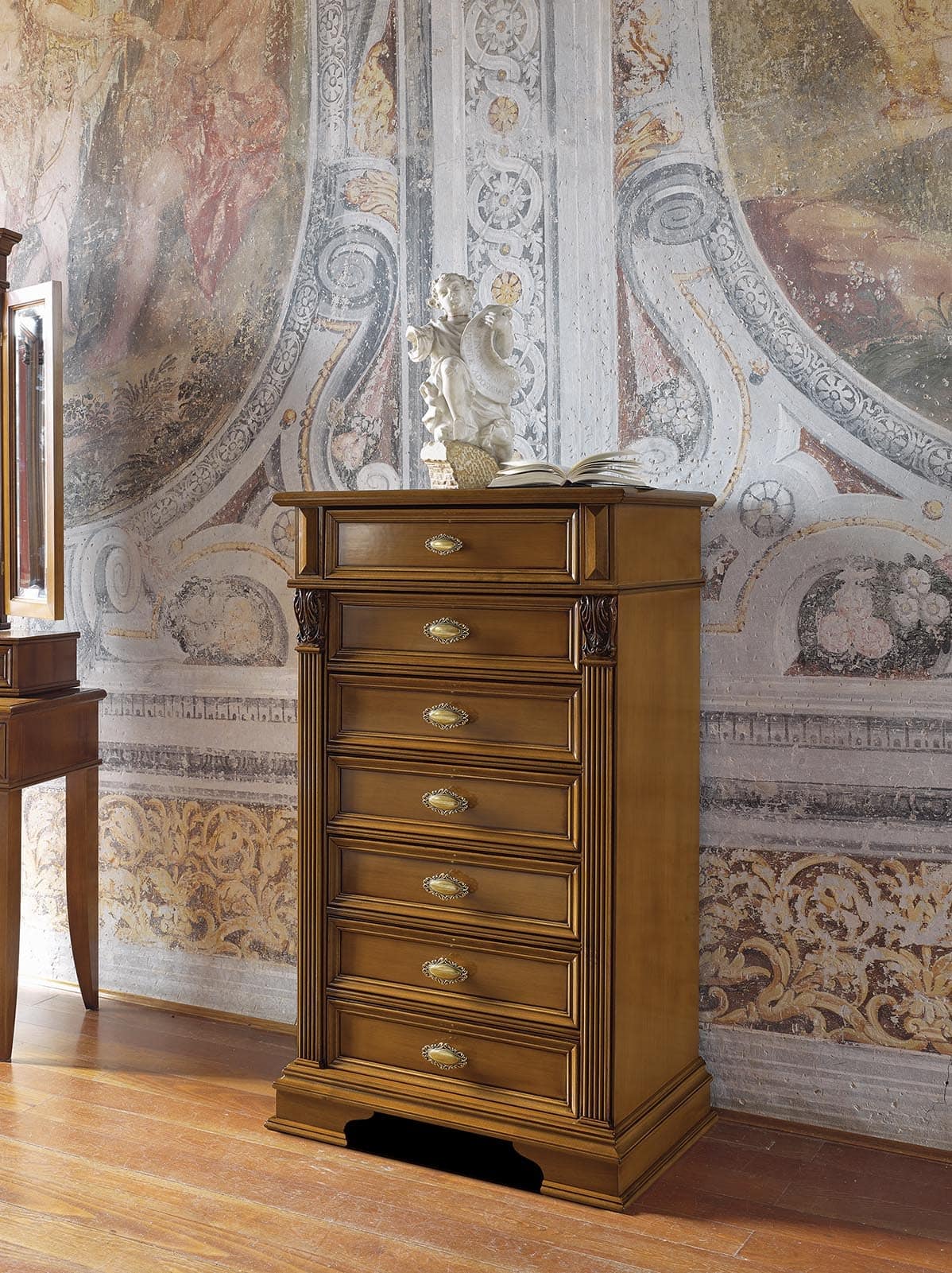 Settimino in legno con 7 cassetti, in stile classico di lusso, ideale per ambienti residenziali.