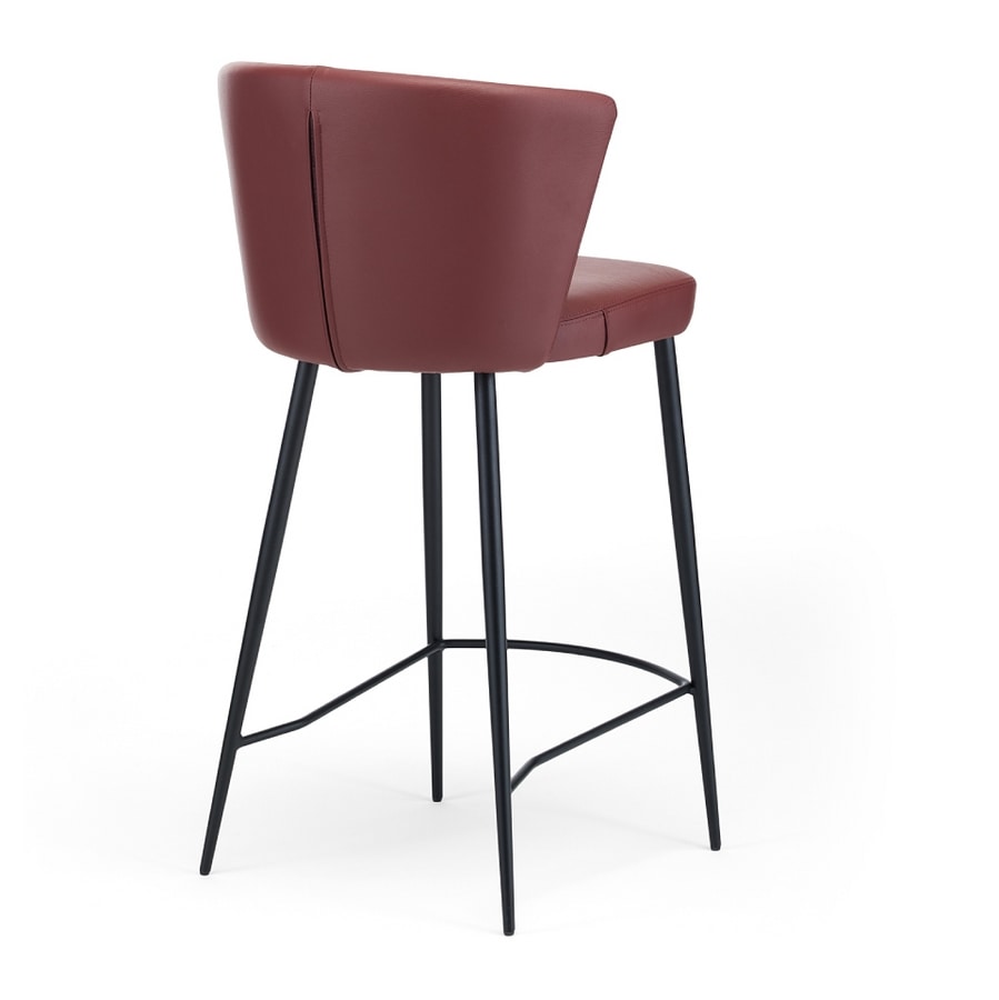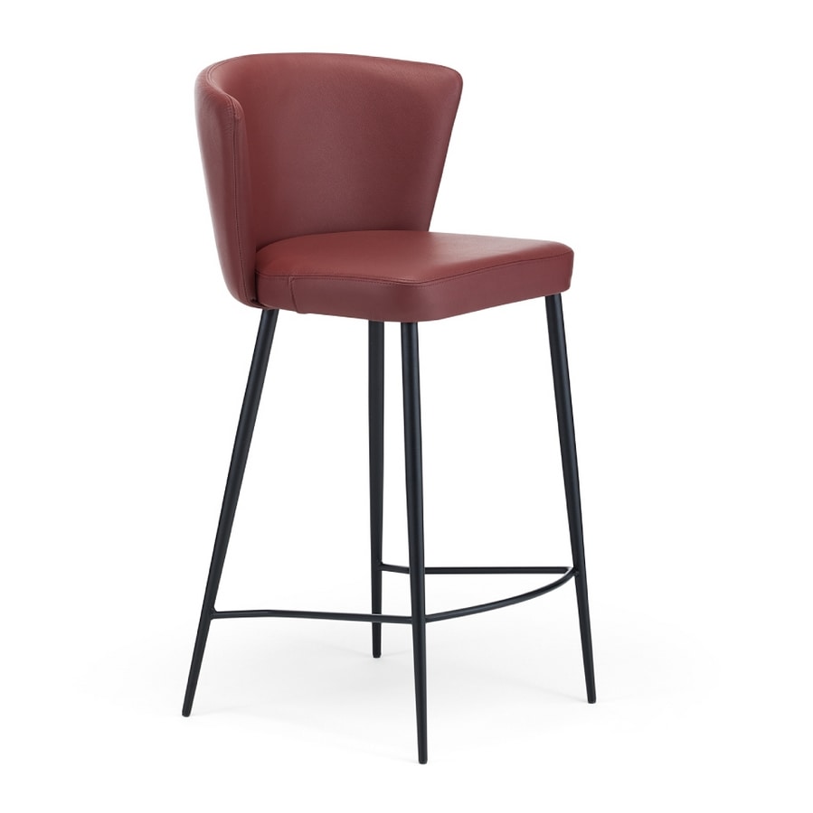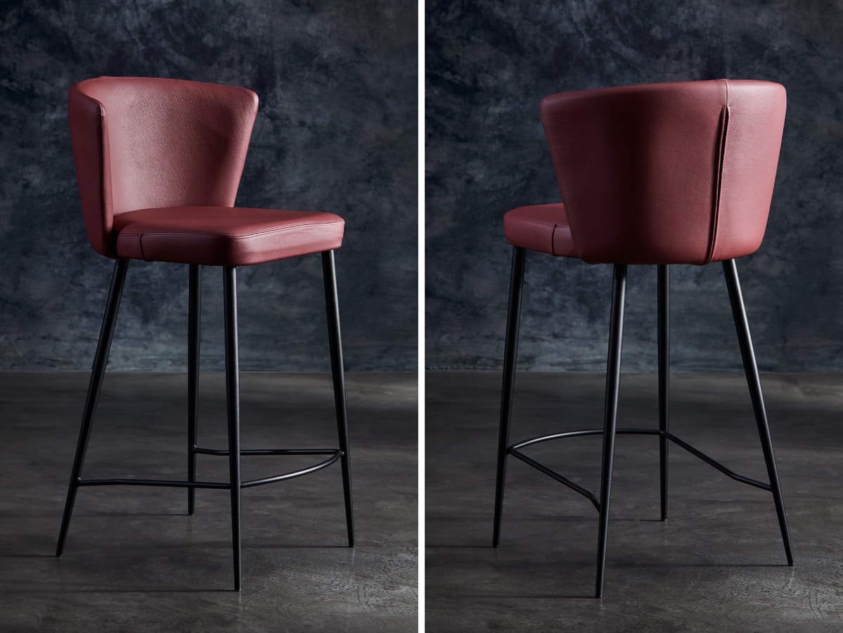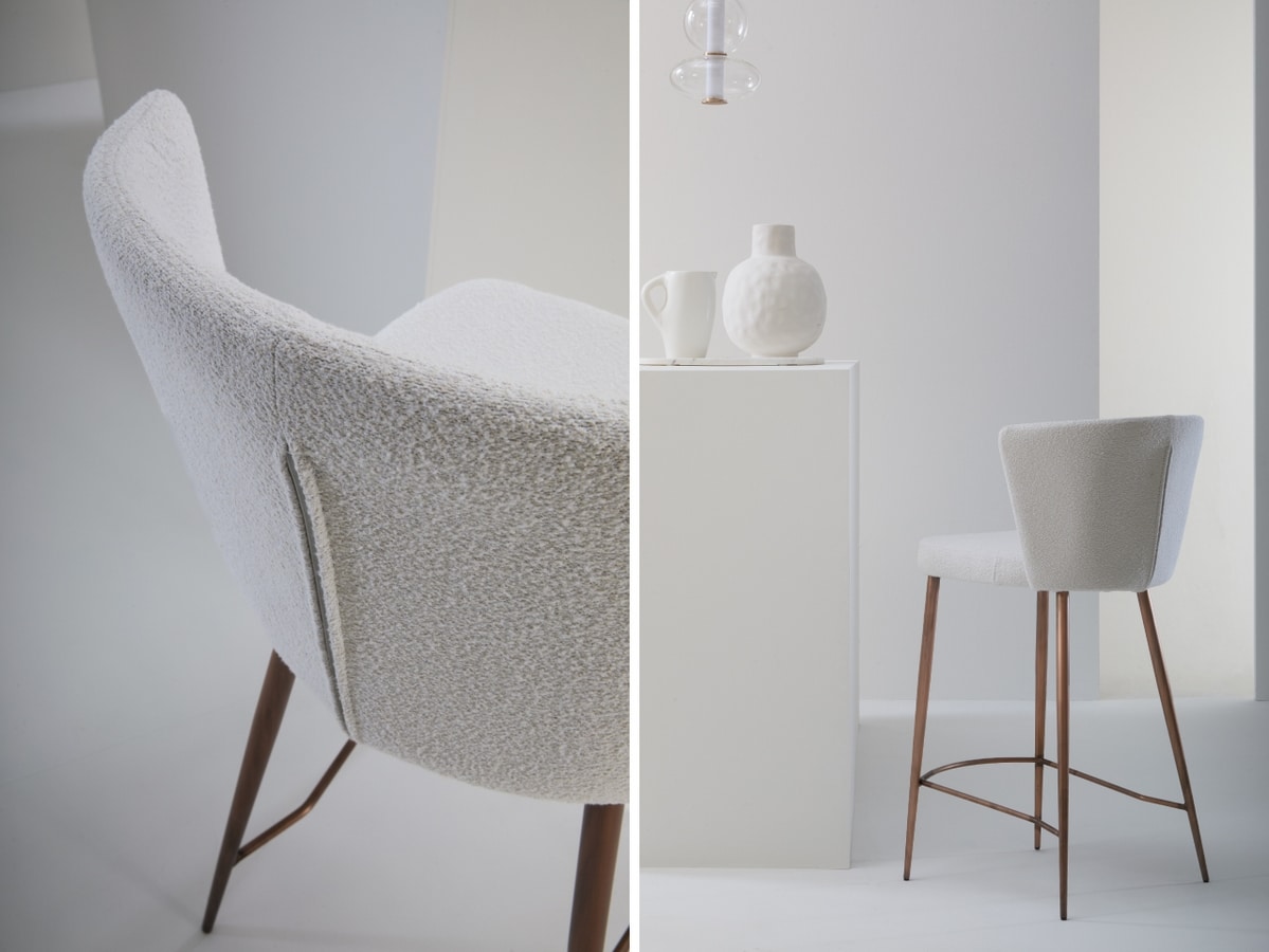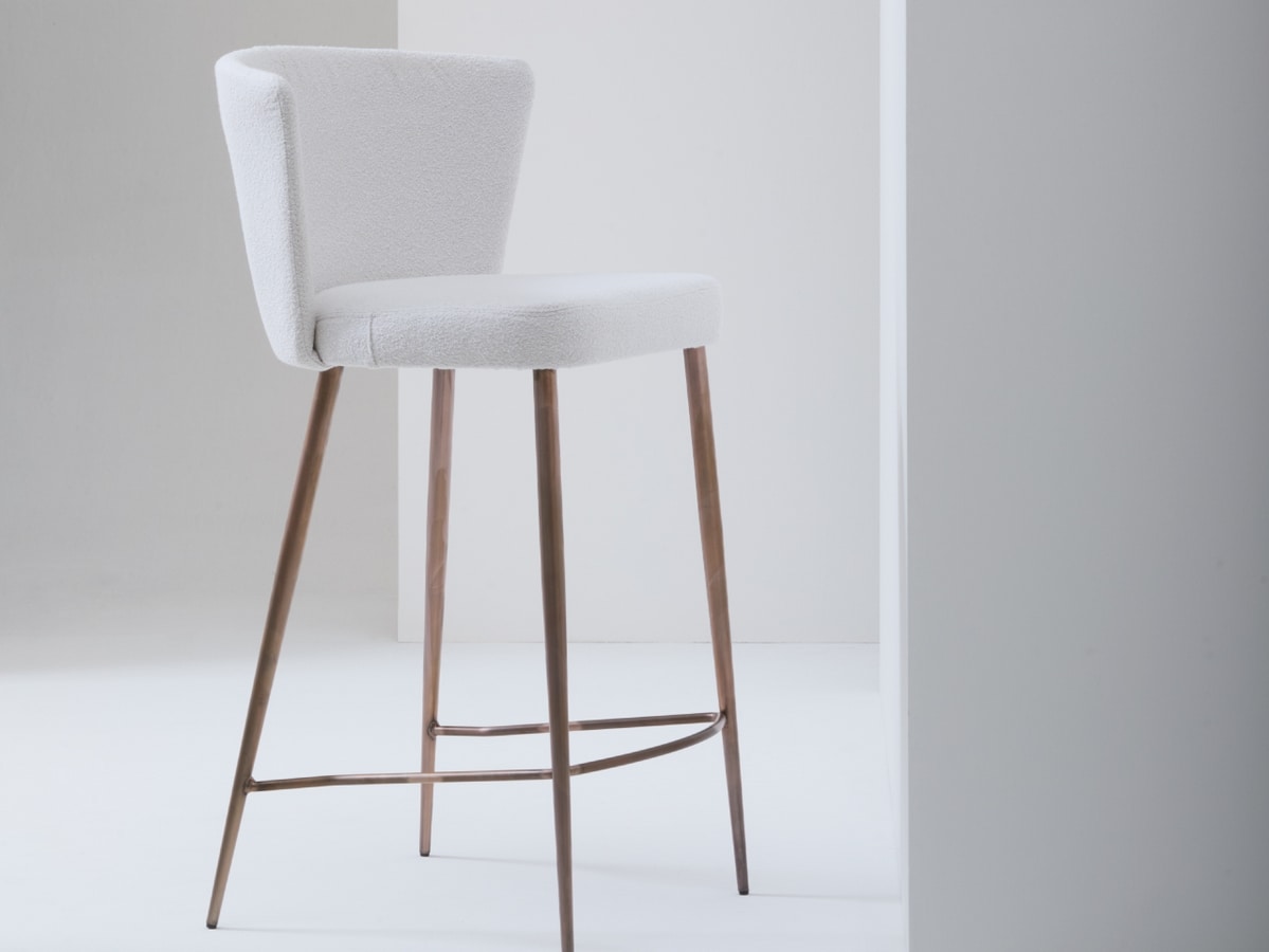 Sgabello con linee pulite, volumi bilanciati e una seduta accogliente