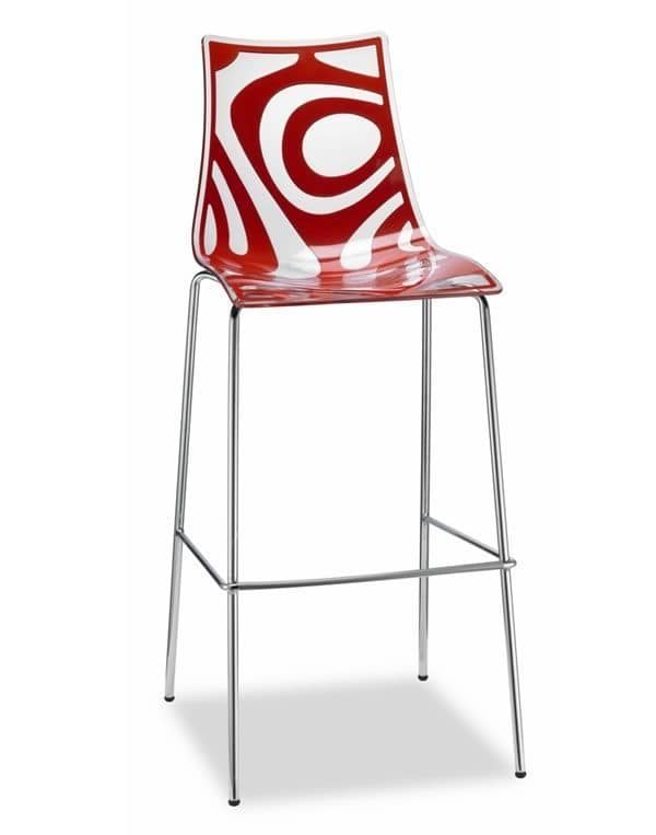 Questo sgabello č ideale per la cucina; presenta la struttura in acciaio tubulare cromato e la seduta in policarbonato caratterizzata da un particolare effetto ottico.