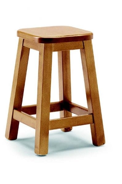 Sgabello in pino con sedile in legno. Altezza seduta 45 o 80 cm. Senza schienale.