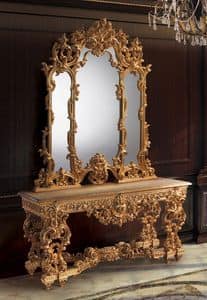 Consolle in legno, intagliata a mano, stile classico di lusso