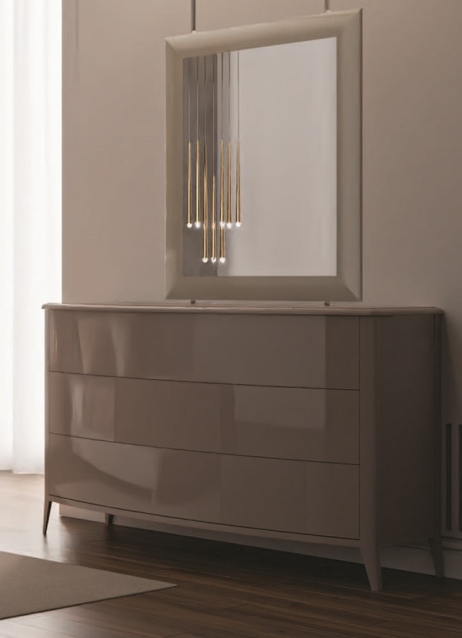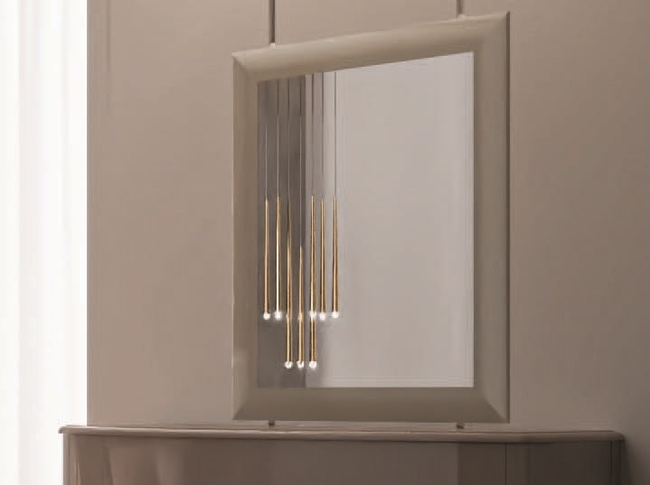 Specchiera rettangolare con cornice in legno eraffinata finitura laccata lucida.