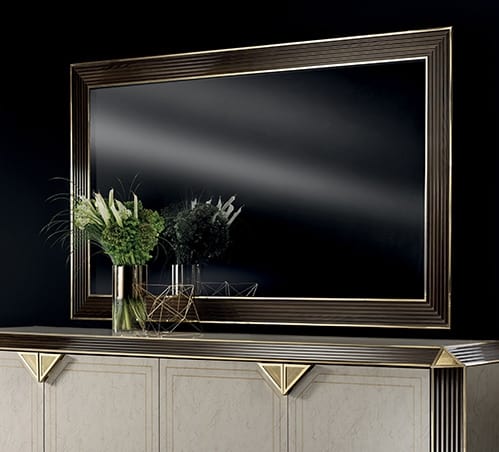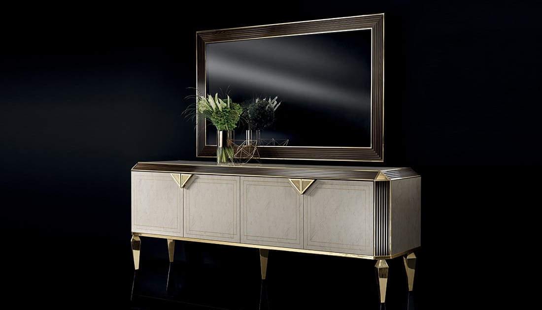Lo stile della collezione Diamante trova negli elementi della zona giorno uno dei punti di maggior espressione del suo carattere. Le superfici vetrate si sposano con le linee essenziali e curate degli inserti in legno di olmo e le placche dorate, un intrigante rincorrersi di geometrie semplici che traducono la capacità, tutta italiana, di tenere insieme forme e colori, in un equilibrio perfetto di creatività e maestria. Ricevere ospiti in una luminosa sala da pranzo sarà un piacere, segno del gusto di saper scegliere lo stile migliore per raccontarsi.