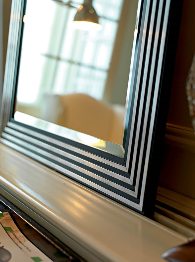 Cornice Argento/Bianco o Argento/Nero in asta con specchio molato.