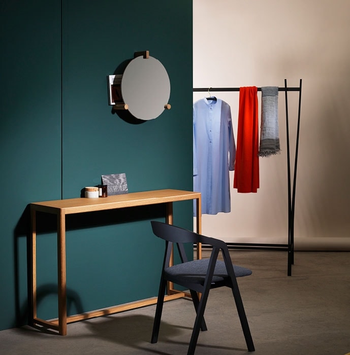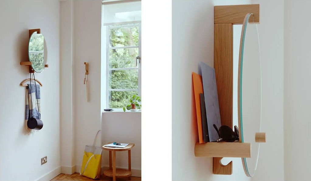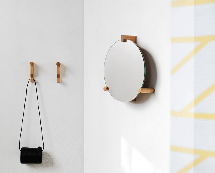 June è uno specchio rotondo con gancio appendiabiti e mensola nascosta. Compatto, funzionale e robusto, è stato ideato per gli spazi piccoli e di passaggio. Un complemento perfetto per ogni ingresso o ambiente.
