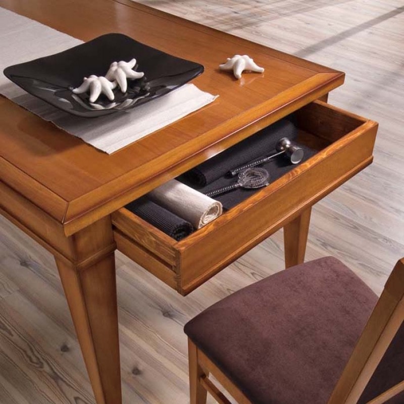 Richiedi prezzi Prodotti similiTavolo rettangolare allungabile con due allunghe laterali a cassetto. Tavolo con forme e proporzioni semplici e pulite, perfette per un arredamento in stile classico contemporaneo.