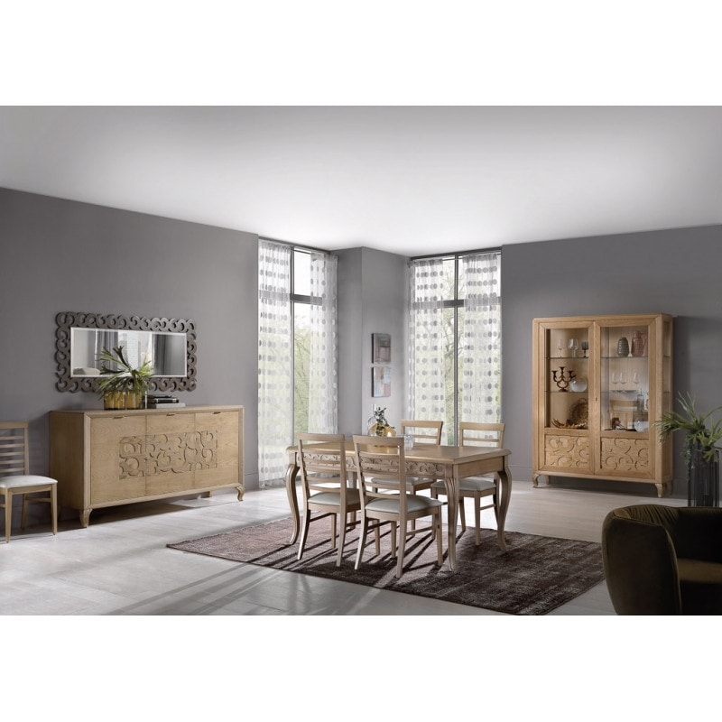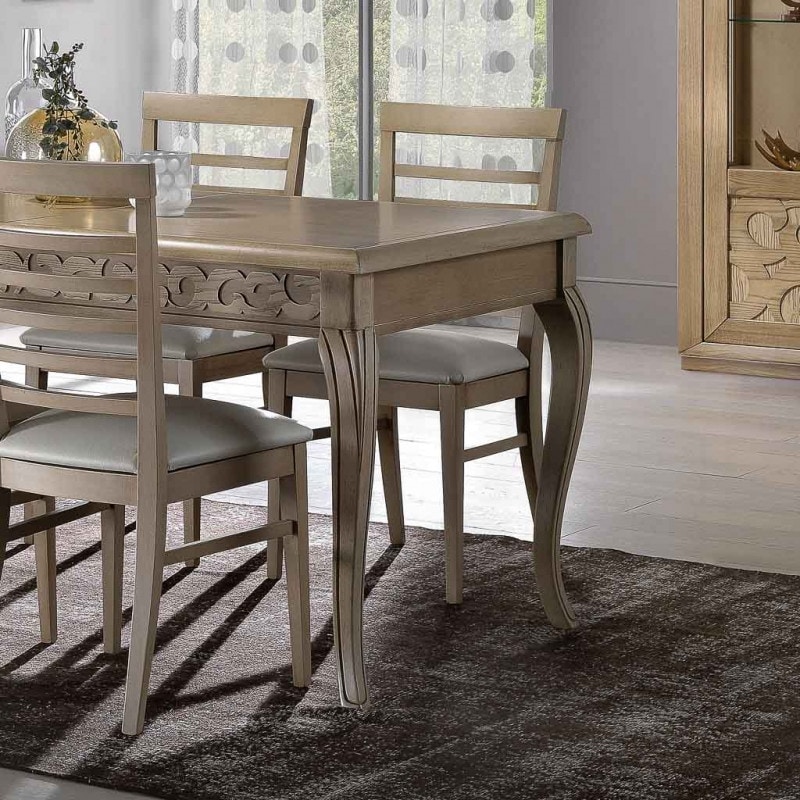Richiedi prezzi Prodotti similiTavolo rettangolare in stile contemporaneo, allungabile con apertura centrale. Questo tavolo ha forme e proporzioni attuali, perfette per un arredamento in eleganete e raffinato. Gambe a sciabola ed incise, basamento con bordo intagliato.