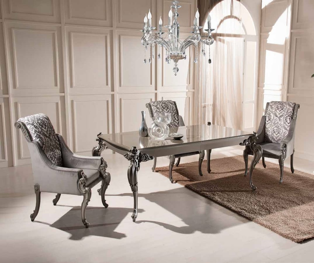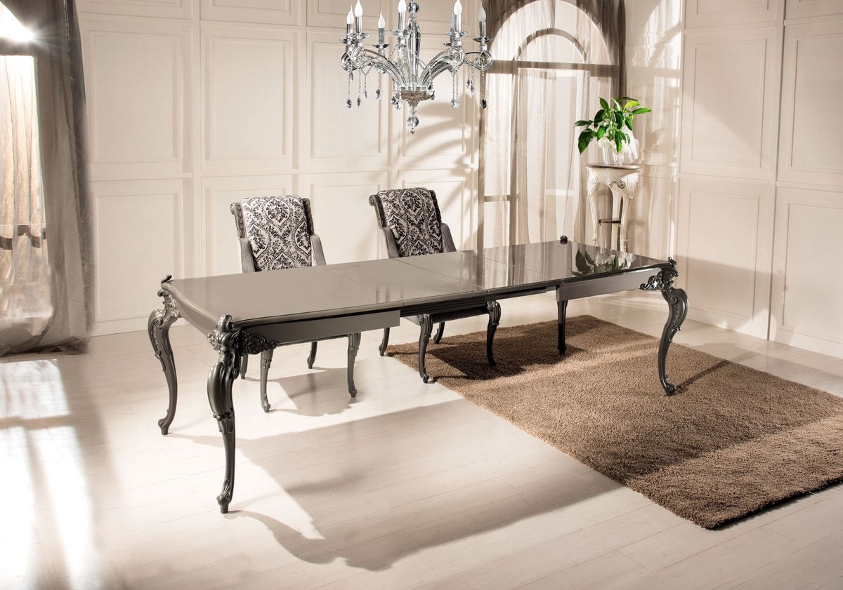 Tavolo rettangolare e allungabile, stile classico di lusso.