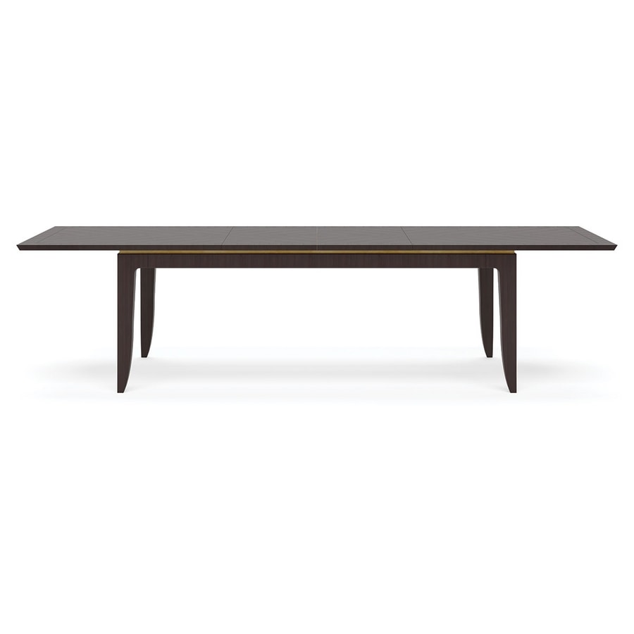 Tavolo allungabile con prolunghe centrali. Piano ed allunghe impiallacciati in rovere.