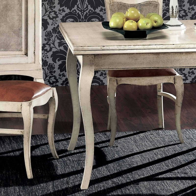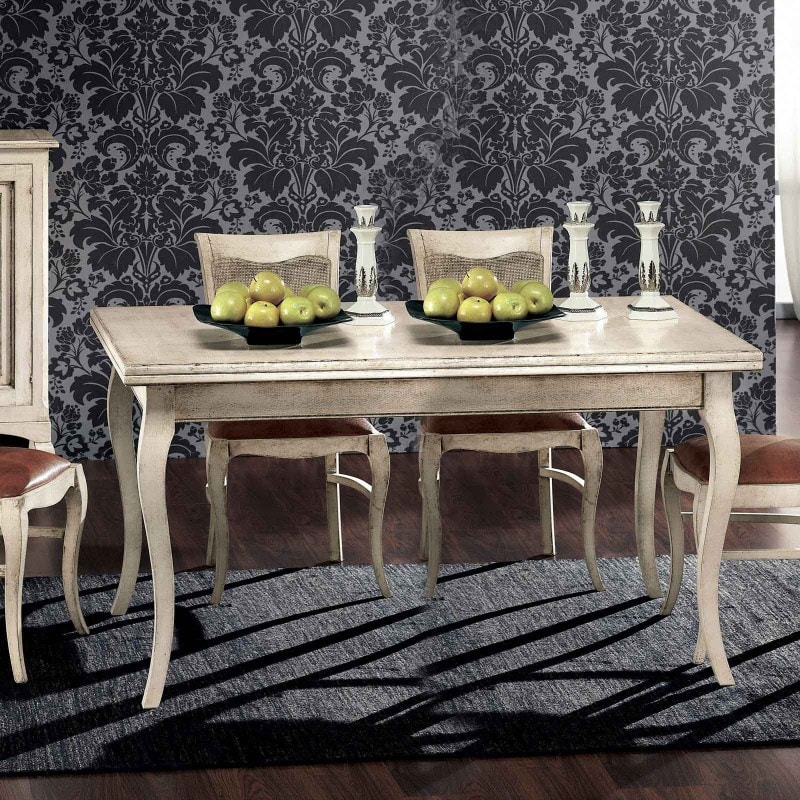 Richiedi prezzi Prodotti similiTavolo rettangolare allungabile con allunghe laterali estraibili, detto anche con apertura "a tiro", realizzato con piano impiallacciato e gambe in massello di faggio.