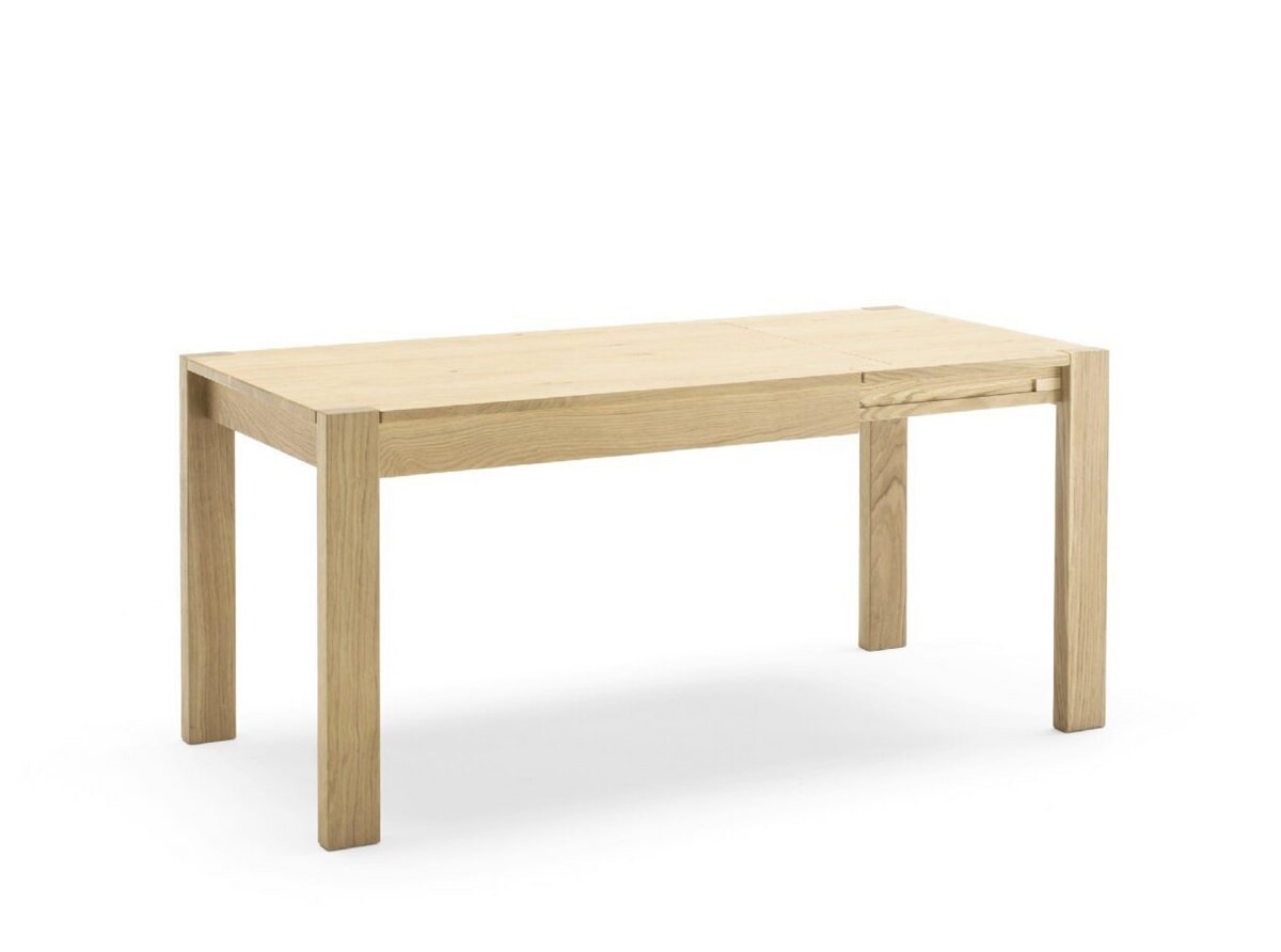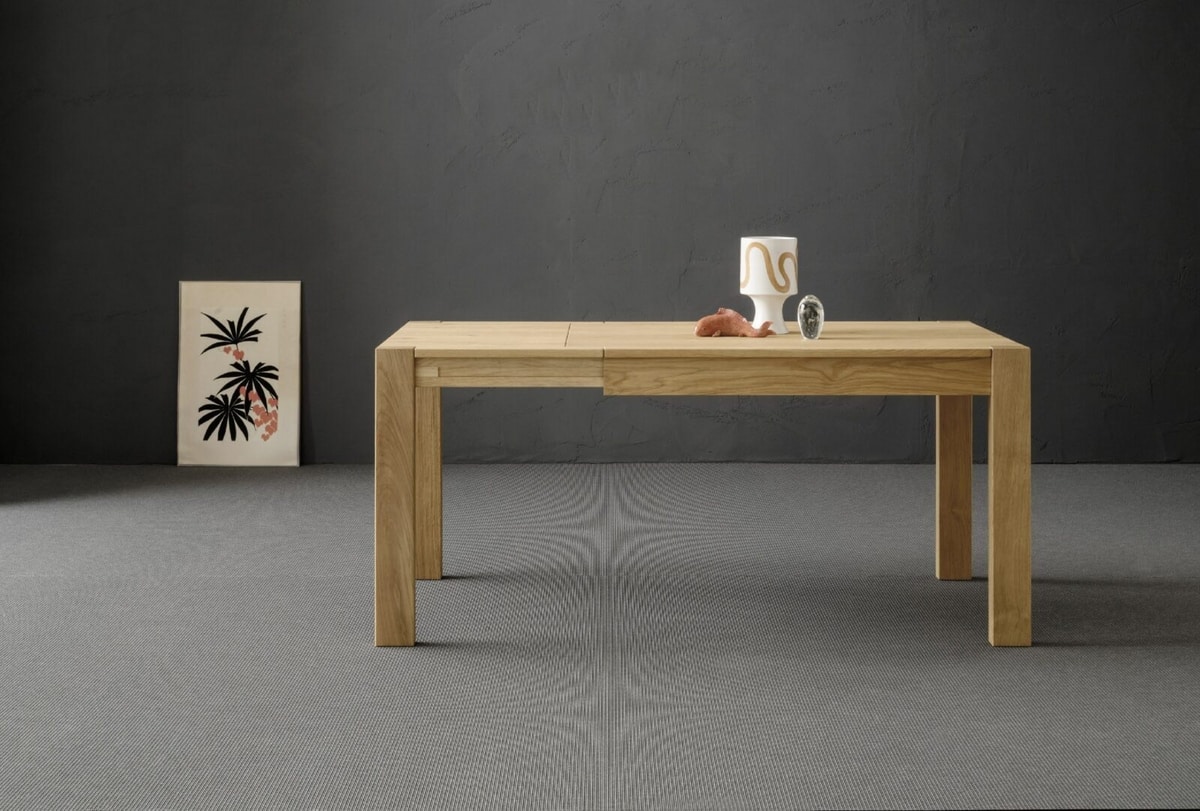 Tavolo allungabile in massello di rovere dalle linee essenziali