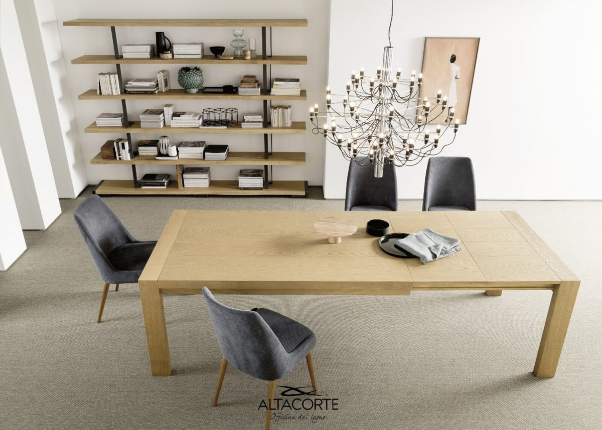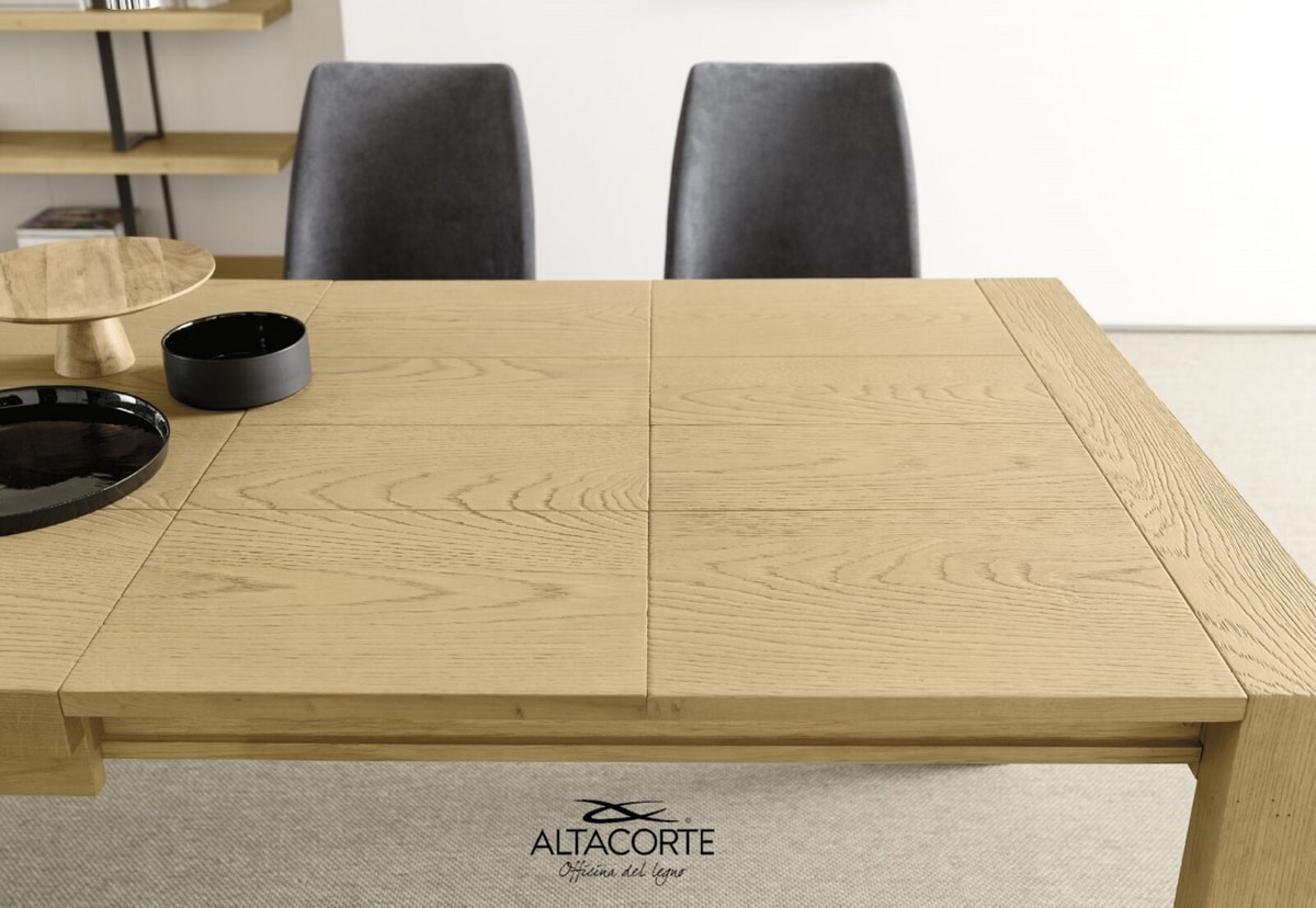 Un tavolo in legno massello di rovere europeo, confezionato a mano da esperti artigiani utilizzando tecniche primordiali di costruzione. Un design semplice dalle linee pulite ma sempre distintive.